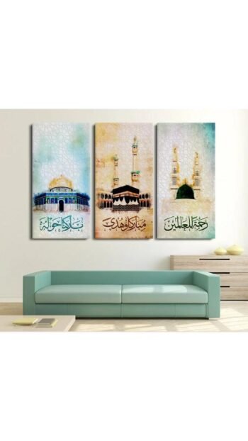 3Pcs set of Holy Mosque sticky phototile Wooden Material wall frames for home decor (8x11inches)