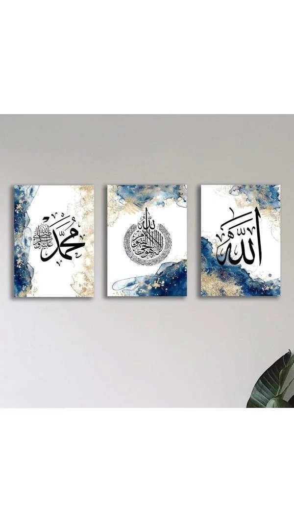3 Marble Blue Islamic Wall Art Modern Arabic Calligraphy- Islamic Wall Decor (2914296)