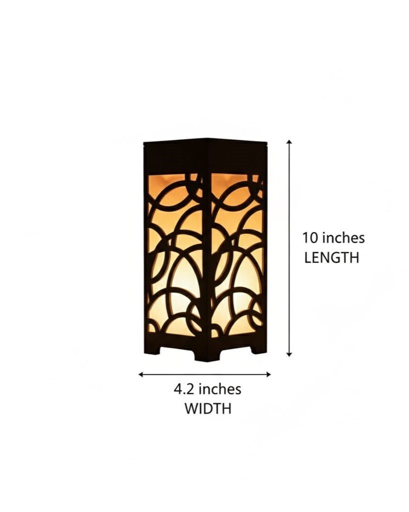 Enhance your ambiance with this modern cutout wooden table lamp, featuring a dark brown finish and a warm golden glow. Its sleek design adds a touch of sophistication to any setting.
