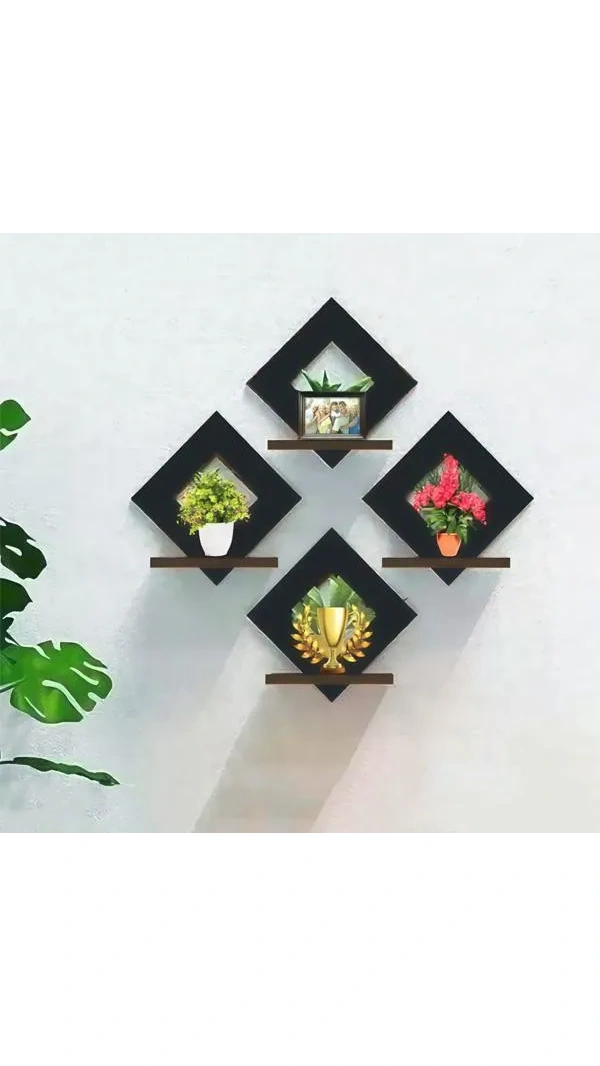 Pack of 04 Decorative Wooden Wall Shelves Suqare Shape