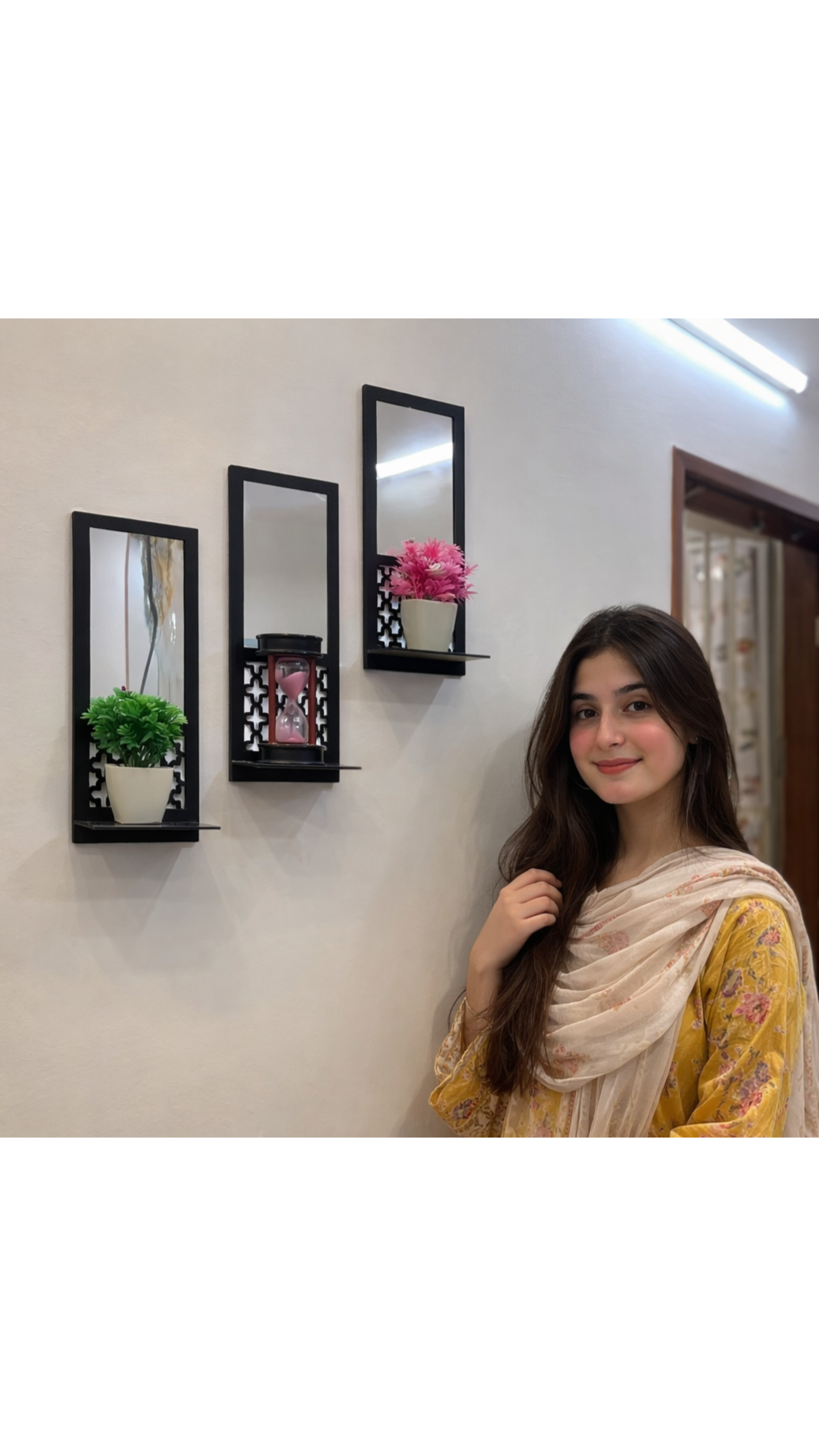 Set of 03 Premium Acrylic Mirror Wooden Wall Shelf For Decor photo review