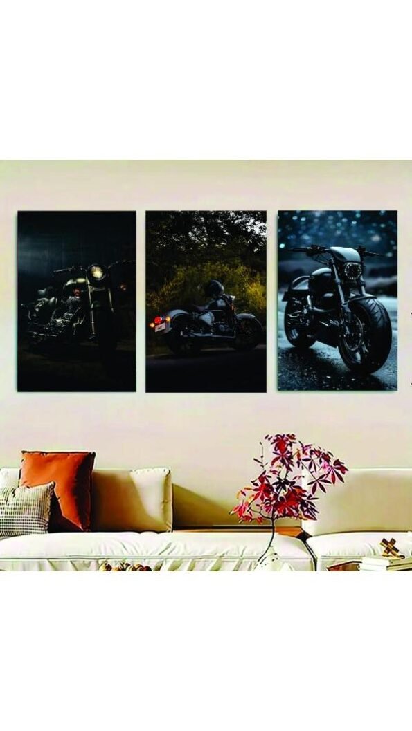 Set Includes: 3 Wooden Canvas Frames with Digital Printed Modern Bike Paintings