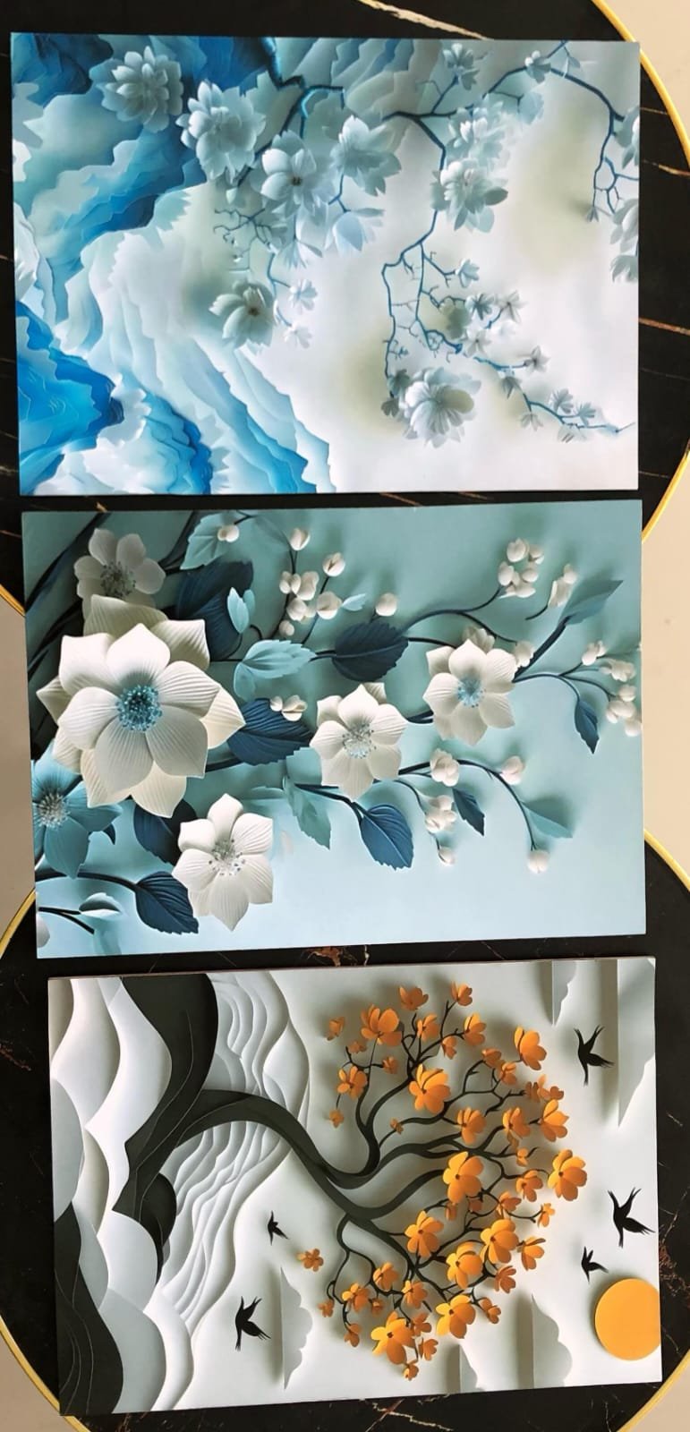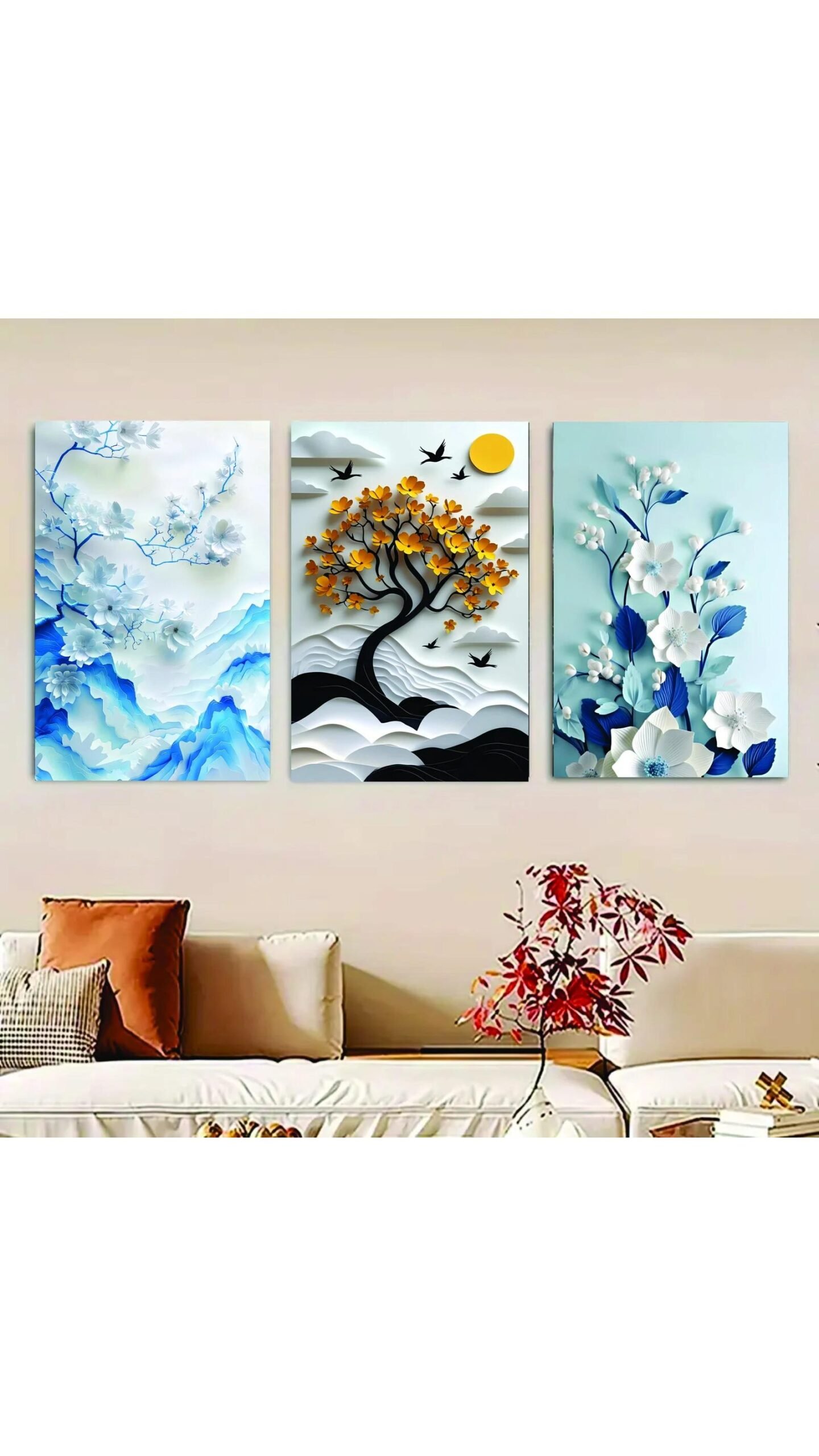 Flower Abstract Art Winter Themed – Set Of 3 Flower Tree Art Wooden Frames For Wall Decoration