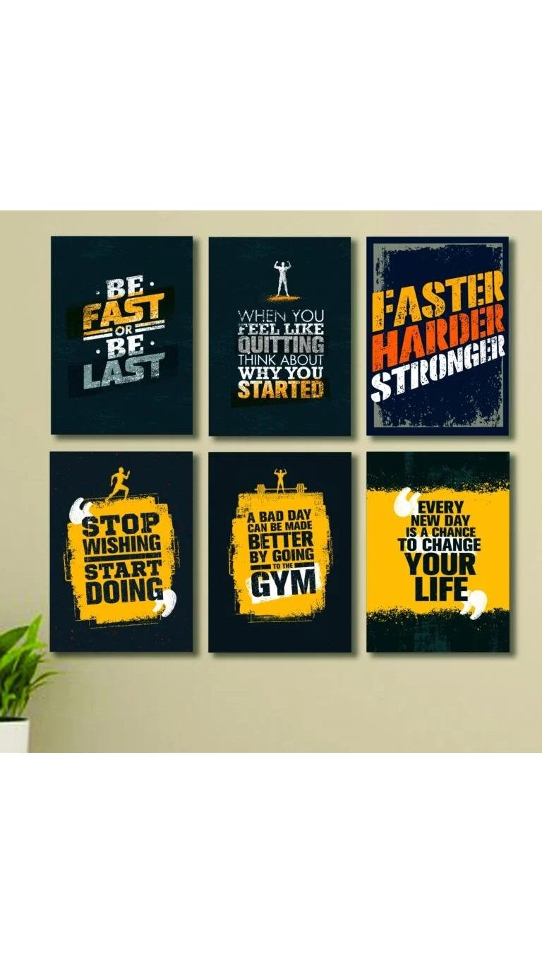 Gym Set Of 6 Motivational Wooden Canvas Frames For Wall Decor